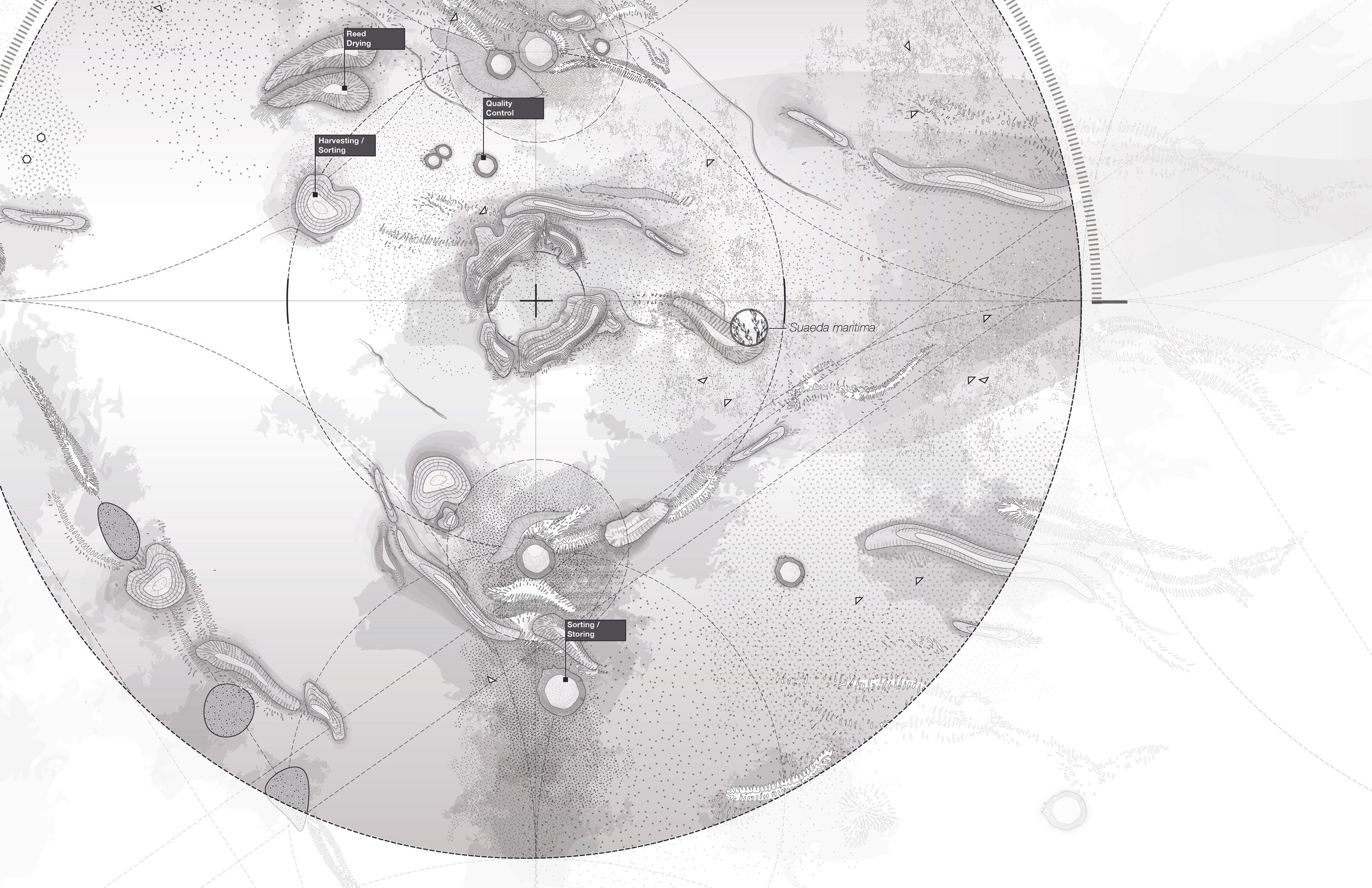 This project explores the concept of “Radical Indigenism,” outlined by Julia Watson, as a critique of traditional notions of cultural heritage and preservation in landscape architecture. To investigate this concept, the project is situated in a reflooded area within the Mesopotamian Marshes called Chibayish. It creates an agricultural network that designs an interconnected cultural system, enabling productive practices to support the native Marsh Arab community known as the Ma’dan.